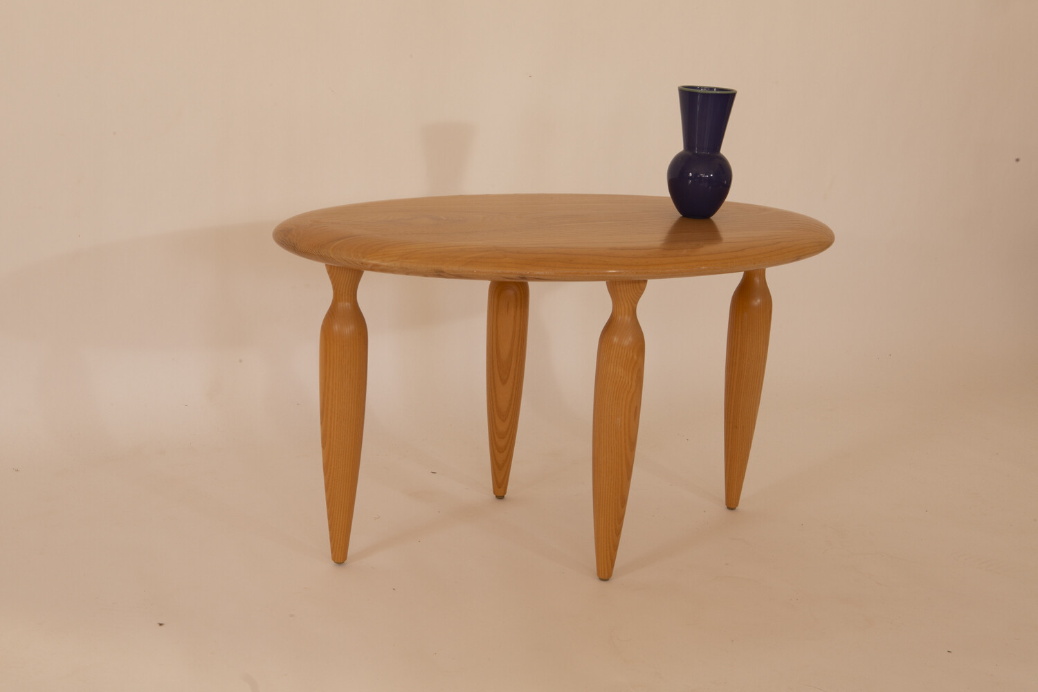 A group of low tables featuring an elliptical edge and elliptical shapes.